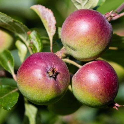 In the early 20th century, a William Dabinett found this apple, named Dabinett after him, as a chance seedling in a Somerset hedgerow, since when it has become very widely grown for its excellent cider and ease of cultivation. Small, green, aromatic apples, sometimes flushed or flecked with red, produce a bitter-sweet juice of such quality that it can be used for single varietal ciders. Small, upright, spreading tree, cropping reliably and well; spur-bearer. Resistant to scab and canker. A good choice where there’s room for only one cider apple, or where late frosts are a risk. Incompatible with Chisel Jersey.