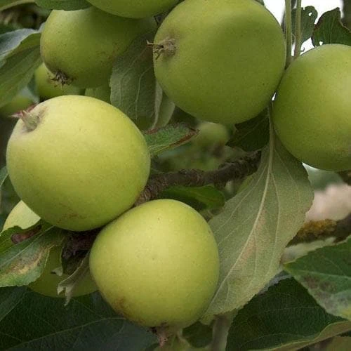 Raised in Normandy in the late 19th century, Apple Michelin is a mid-season bitter-sweet cider apple. The fruit is medium-sized and green; the juice is low in acidity but high in sugars and tannins, and mainly used for blending. Small tree, coming early into bearing; a spur-bearer. Very heavy and reliable cropper, grown commercially and particularly suitable for blending. Some resistance to scab.