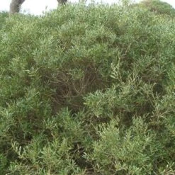 A highly attractive evergreen shrub with pink buds along slender upright stems that open in spring to small white flowers.