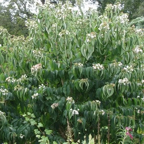 A member of the honeysuckle family and better known in North America, where it is sometimes called Crape Myrtle of the North, or Seven Son Flower. The scented, creamy white flowers fall with the first frosts but their calyxes remain, turning pink before darkening to burgundy. Butterflies love heptacodium almost as much as Buddleia.