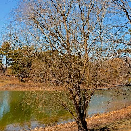 Grown for its contorted, deep green, winter branches, twisted foliage and year-round interest, Salix x sepulcralis Dart’s Snake is a small, fast-growing, deciduous tree with an upright habit. The snaking branches show at their best in winter, while the narrow, glossy, mid-green leaves are also slightly twisted. In spring, yellow catkins dangle from the bare branches. Because of its wonderfully twisted branches, twisted willow Dartโs Snake shows best as a specimen tree, or as part of a border where it can take centre stage in winter. It can be pruned hard to keep it to size, and the prunings make striking โflowerโ arrangements.